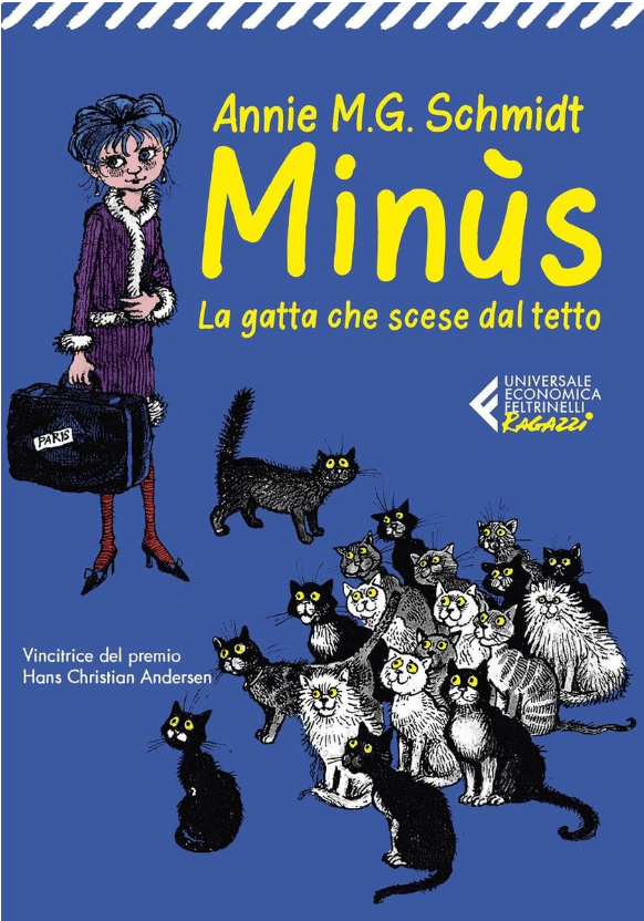 Minùs werd voor het eerst in 1991 in het Italiaans vertaald door Giuseppina Drago Visser en verscheen bij een zeer kleine, religieuze uitgeverij. Die vertaling is nergens meer te krijgen. Mijn vertaling voor uitgeverij Feltrinelli dateert van 2012 en werd in 2021 opnieuw uitgegeven, helaas met de ondertitel La gatta che scese dal tetto, de kat die via het dak kwam. Misschien hebben ze dat overgenomen van de Engelse uitgave van Pushkin Press. Maar in het begin weet je niet dat Minoes een kat is, dat moet je toch niet verklappen in de titel?